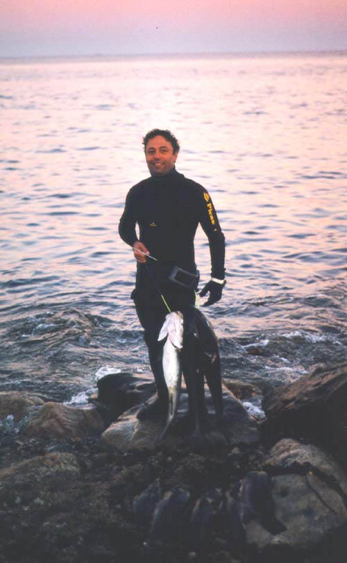 a record catch in one hour diving :-) ... 3 magnificent blue fish landed between 16h30 and 17h45 !