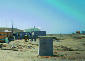 Nate smiles and inquires "Abierto?" ("Open?"). The lady still is eyeing us hard. She speaks. "Comeja?"(food) "Si!" In retrospect Im wondering what else she thought we could have wanted. Or what she could have offered for that matter. "No. Siete", she says dismissively. No food till seven. Its just before six. Were starving. We decide to try Hotel Veracruz. The Hotel is a large white compound located at a high point in town. Its one of the easier places to navigate to. A word about finding your way around Bahia Tortuga. You cant. What you do is look for the main street and try to work your way from a point of reference, like the police station. The grid system and uniform street design is late finding its way to BT. For people from Europe where some of the streets have evolved over thousands of years from footpaths this may not seem like a problem. But for people from the states who grew up never having made anything but a 90 degree turn on a city street, where each intersection is at exact ½ or ¼ mile intervals, its downright perplexing. The only street signs consist of the occasional piece of cardboard