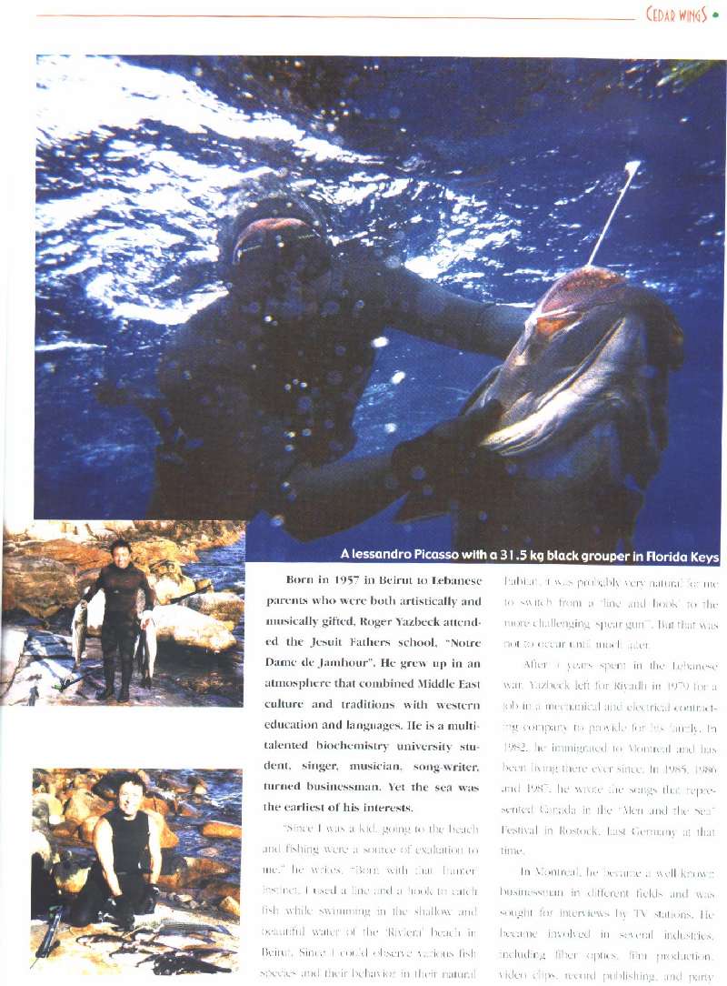 Since I was a kid, going to the beach and fishing were a source of exaltation to me, he writes, Born with that hunter instinct, I used a line and a hook to catch fish while swimming in the shallow and beautiful water of the Riviera beach in Beirut. Since I could observe various fish species and their behavior in their natural habitat, it was probably very natural for me to switch from a line and hook to the more challenging spear gun. But that was not to occur until much later.